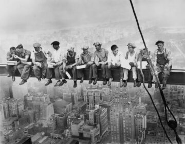 The book "Lunch on a Beam: The Making of an American Photograph" by Christine Roussel features a picture that depicts a beam atop 60,000 tons of structural steel. This beam was hoisted, positioned, and riveted into place by as many as 400 ironworkers. The review is written by Michael Liss.
