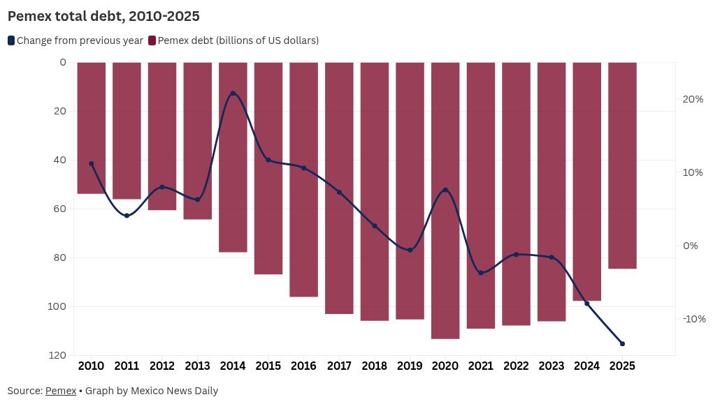 Pemex debt hits lowest level in over a decade at $84.5 billion